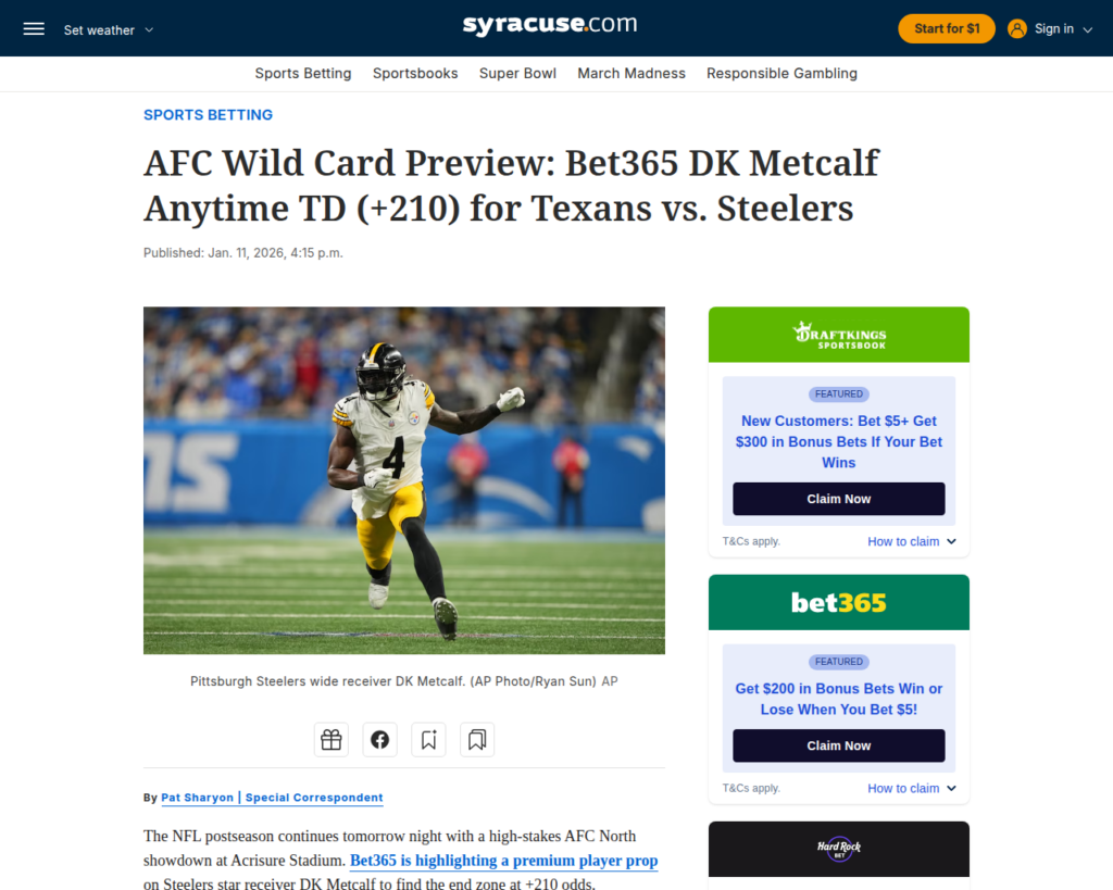 Bet365 Bonusaktionen im Fokus der NFL Wild Card Runde Mit Beginn der NFL Wild Card Weekend rücken nicht nur die